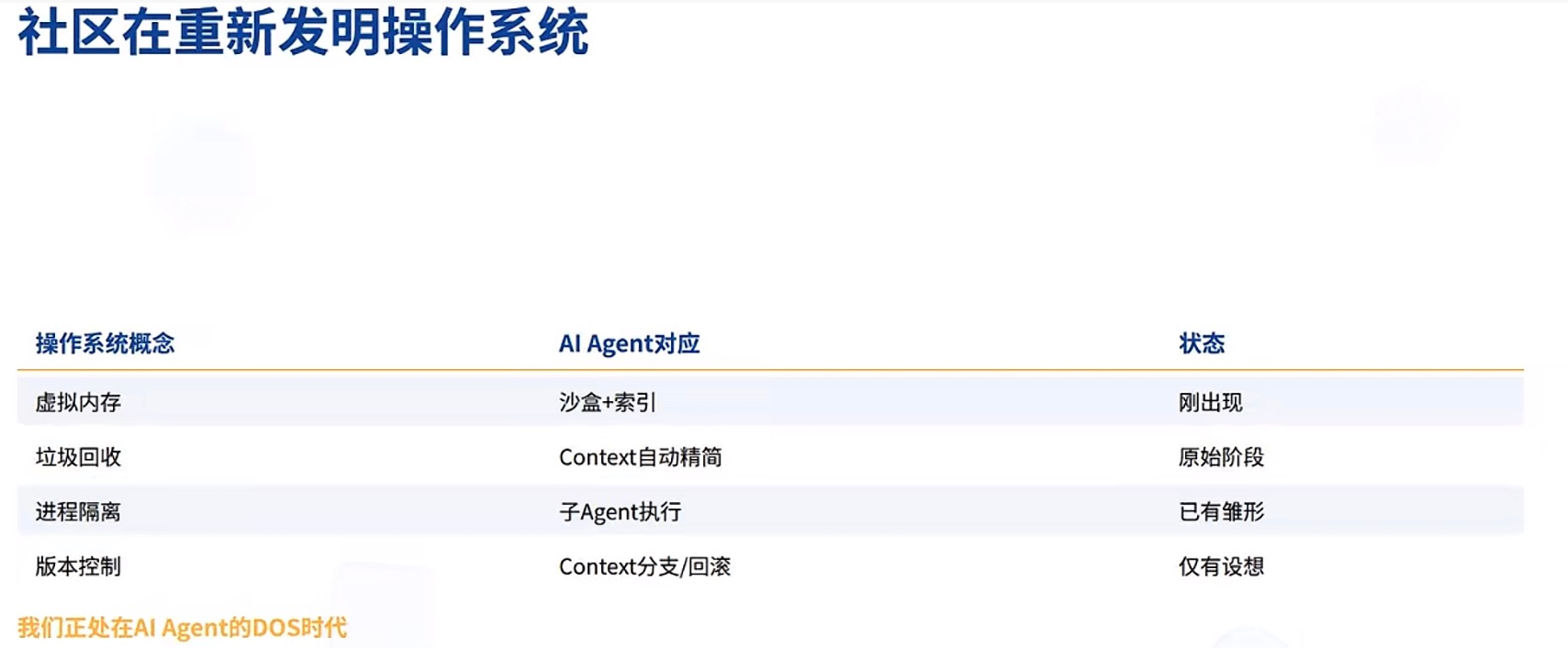 Context管理、记忆系统、状态持久化、工具输出网关——这些都是AI Agent的操作系统层。写Agent的人很多,做Agent OS的人很少。而平台层的价值,永远大于应用层。